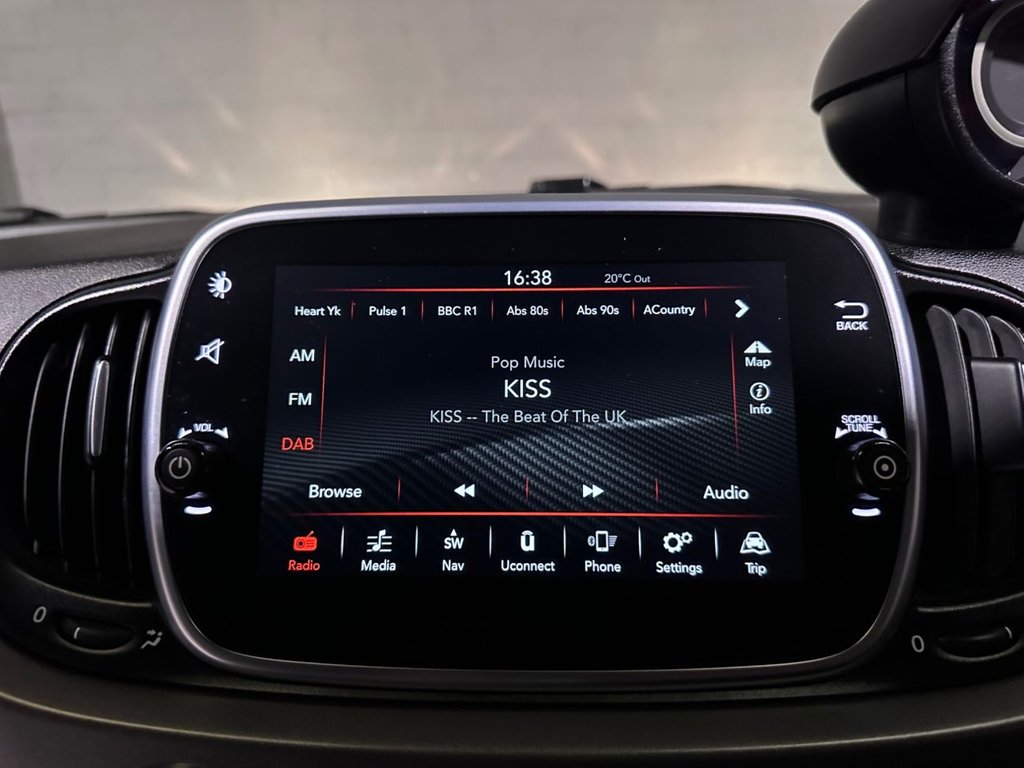 12V Power Point, 17in Alloy Wheels - Turismo, 70th Anniversary Side Badge, 7in TFT Instrument Cluster with Sports Mode, 7in Touchscreen Radio with NAV - BT - USB - DAB, Abarth Side Stripe and Door Mirrors - Gloss Finish - Red, Abarth Sports Leather - Black, ABS - Anti-Lock Braking System, Airbags - Driver, Airbags - Drivers Knee, Airbags - Front Side, Airbags - Passenger, Airbags - Window, Apple Carplay - Android Auto, Automatic Climate Control, BMC High Performance Air Filter, Body Colour Front and Rear Bumper Insert, Central Locking - Remote, Dark Tinted Rear Quarter Windows, Door Mirrors - Electrically Adjustable and Heated, Dusk and Rain Sensors, EBD - Electronic Brakeforce Distribution, Electric Windows - Front, Electrically Assisted Power Steering - DUALDRIVE with Sport Mode, Electronic Stability Control-ASR-Hill Holder, Fix and Go Puncture Repair Kit, Front Fog Lights, Koni FSD Rear Shock Absorbers, LED Day Running Lights - DRL, Poly-Elliptical Headlights, Rear Koni Suspension, Rear Parking Sensors, Record Grey, Satin Chrome Finished Mirror Caps, Satin Grey Dashboard Cover, Seats - Height Adjustable - Front, Split Folding 50:50 Rear Seat, Sports Pedals - Aluminium, Steering Wheel - Height Adjustment, TPMS - Tyre Pressure Monitoring System, TTC - Torque Transfer Control, Twin Exhausts with Satin Steel Tailpipes, Uconnect 7in Touschscreen DAB with 6 Speakers - Bluetooth with Audio Streaming and USB, Uconnect Live Services